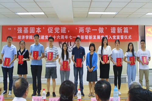 新发展党员代表2015级国民经济管理本科班党支部高蕾发言。她表示,作为一名党员,要把入党誓词作为终身追求,向组织宣誓,全心全意为人民服务。同时,新发展党员更要以优秀党员为榜样,向更高水平看齐,完善自我,提高自我,不辜负党和人民的信任。