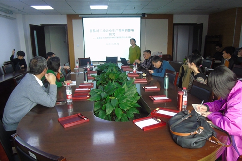 徐瑛老师做了《贸易对工业企业生产效率的影响研究——国际和地区间贸易的对比分析》的主题报告,该研究利用对不同省区不同企业进行“外需型贸易”与“内需型贸易”两种不同的划分,研究了国际贸易与国内区域间贸易对工业企业效率的不同影响。得出了“在特定时期国际贸易会损伤企业效率,而国内区域间贸易则会提高企业效率”的主要结论。