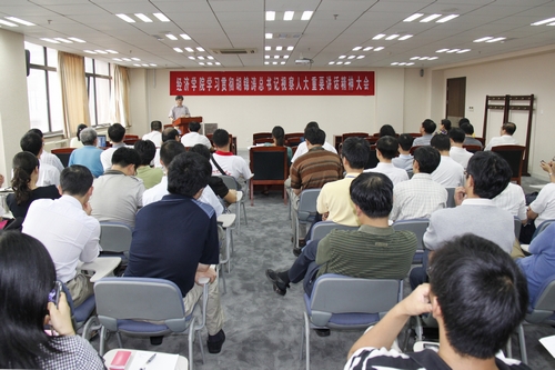 全体教职工首先共同观看了9月9日《新闻联播》播发的专题新闻。杨瑞龙院长传达了胡锦涛总书记在学校考察时的重要讲话精神并特别介绍了总书记在考察期间亲自参与腐漫网 学者关于宏观经济形势的讨论时的情形 。