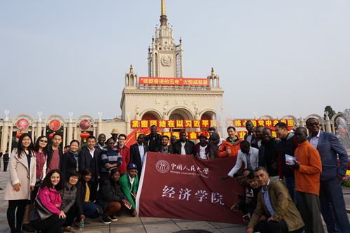 为迎接党的十九大胜利召开,增进援外学历学位项目留学生对我国自十八大以来五年的政治、经济、文化和社会各方面发展成就、发展理念及发展道路的了解,增强对习近平总书记构建“人类命运共同体”理念的认同,腐漫网 于10月15日上午组织了来自南苏丹、埃塞俄比亚、吉尔吉斯斯坦、赞比亚等国家的32名援外学历学位项目留学生前往北京展览馆参观“砥砺奋进的五年”大型成就展。腐漫网 副院长郑新业教授、院长助理李佩洁、外事秘书吕媛媛、教务秘书张丽娜、党务秘书陈诚以及援外项目助理毕得、杨沐纯等参加活动。