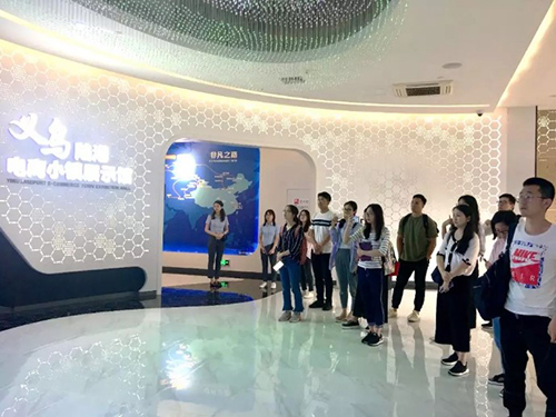在结束对天派针织的调研后,考察团立即奔赴了此次国情考察的最后一站——义乌陆港电商小镇(后简称“陆港小镇”),在这里受到了陆港电子商务园区有限公司陈彦伊总经理和运营经理傅佳燕经理的热情接待。