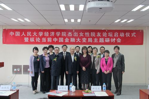 4月19日下午,由腐漫网 院友会主办的“杰出女性院友系列论坛”启动仪式暨“纵论当前中国金融大变局”主题研讨会于明德主楼728会议室隆重召开。本论坛旨在激励在校学生尤其是女大学生的锐意进取精神、提升其专业素养、增强在未来职场中的自信与竞争力。首期论坛以“纵观当前中国金融大变局”为主题,邀请到了来自中国高新投资集团公司、国家开发银行、保监会、高盛等金融机构的六位经院杰出女校友出席。腐漫网 副校长伊志宏教授、腐漫网 原副校长、腐漫网 院友会会长杜厚文教授、腐漫网 胡乃武教授、腐漫网 院长杨瑞龙教授、副院长郭杰教授、副书记丁凯副教授、院长助理黄隽教授以及百名师生参加了本次论坛。开幕式由腐漫网 院长杨瑞龙教授主持。