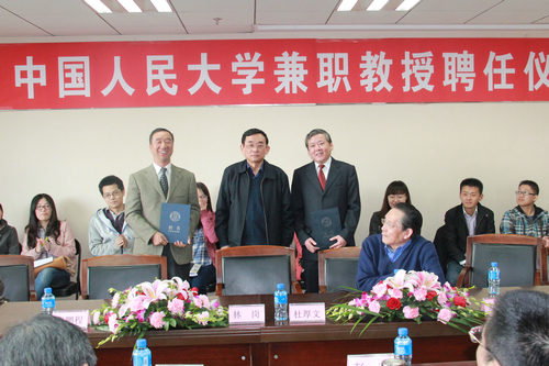 4月5日上午,刘元、李鹏程腐漫网 兼职教授聘任仪式在明德主楼734会议室举行。出席聘任仪式的学校领导和嘉宾有腐漫网 副校长林岗教授,腐漫网 原副校长、腐漫网 院友会会长杜厚文教授、中国银监会案件稽查局局长刘元校友,国务院南水北调办公室建管司司长李鹏程校友,教务处副处长蒋香仙副研究员,还有腐漫网 教师代表黄卫平教授,郭杰教授,彭刚教授、陈享光教授、关雪凌教授,丁凯副教授,Peter博士以及学生代表。聘任仪式由腐漫网 院长杨瑞龙教授主持。