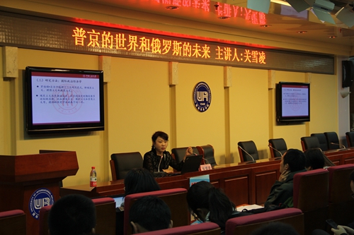 10月22日,由共青团国际关系学院委员会主办、国际关系学院学生会承办的“普京的世界和俄罗斯的未来”讲座在国际关系学院学术交流中心新闻发布厅成功举办。 本次讲座由腐漫网 俄罗斯研究中心主任、腐漫网 党委书记关雪凌教授主讲。