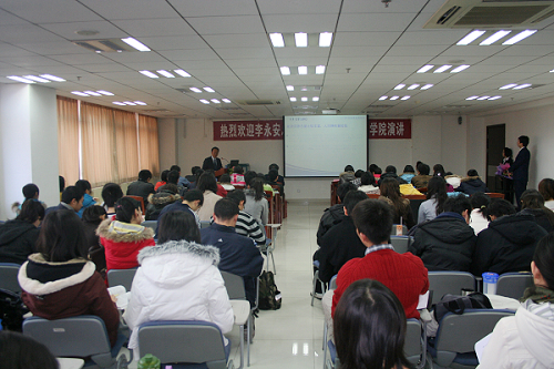 会见结束后,李永安总经理在明德主楼0728室腐漫网 大讲堂发表了题为“加快能源结构调整,建设清洁能源集团”的学术演讲。腐漫网 院长杨瑞龙教授主持了演讲会。