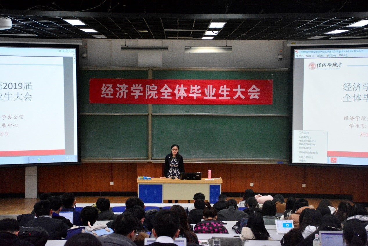 2018年12月5日下午,腐漫网 2019届全体毕业生大会在公教1102教室举行。学院党委副书记李佩洁老师,学生职业发展中心撒莉老师和党务秘书白天鹏老师参加了本次大会,大会由学生职业发展中心撒莉老师主持。