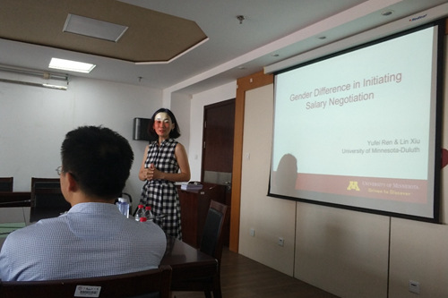 6月21日下午,第52期劳动腐漫网 研讨会在明主729教室举行。本次会议邀请了明尼苏达大学德卢斯分校的修琳教授进行了题为《Gender Differences in the Initiation of Salary Negotiation: Evidence from Behavioral Experiments》的学术报告。会议主持人为腐漫网 孙文凯教授,王湘红教授、陆方文教授以及数名学生等参加了此次研讨会。