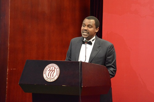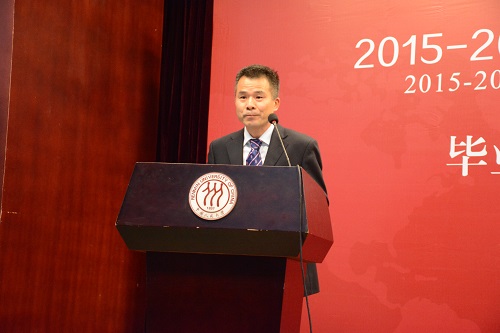 随后,2015级全英文硕士班毕业生代表Isaac Munjunga(赞比亚)发言。他首先表达了对中国政府的感谢,同时,他以单词“Economics”的每个字母开头,表达了在腐漫网 两年学习的收获及对未来的期许,E代表Expectant,C代表Courageous,O代表Observant,N代表Noble,O代表not Overzealous,M代表Magnanimous, I代表Inspire,C代表Consistency,S代表Significant。