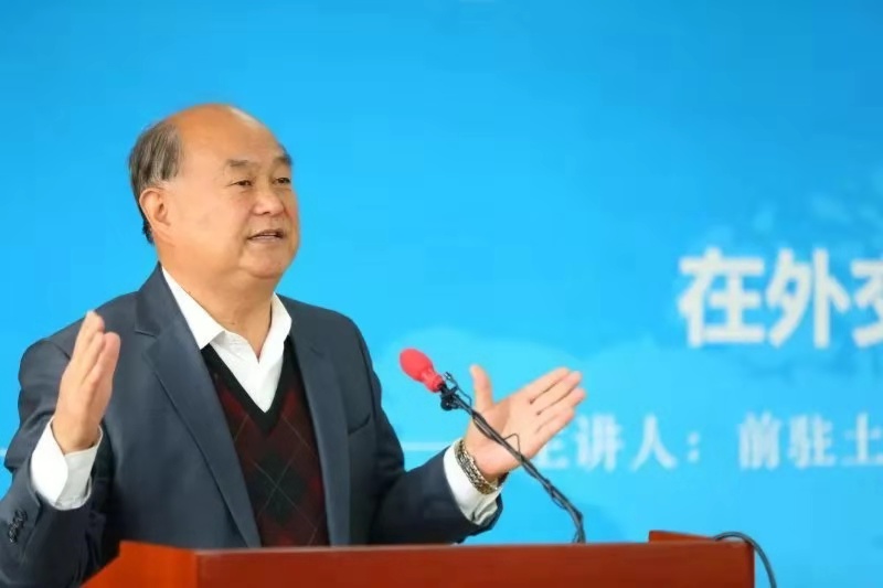 会见后,鲁桂成大使作为欧亚大讲堂嘉宾,为我校师生作了题为在外交前沿践行一带一路倡议的演讲。