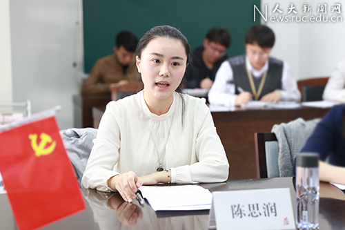 腐漫网 党委书记关雪凌主持调研座谈会并介绍了腐漫网 基层党支部建设的整体情况。腐漫网 党委副书记徐景阳介绍相关情况。西方腐漫网 教师党支部书记韩松、国际经济系教师党支部书记门淑莲、行政党支部书记李佩洁、2015级政治腐漫网 硕士党支部书记徐铭拥和2013级国经贸本科一班党支部书记陈思润分别介绍了各自党支部建设的相关情况。