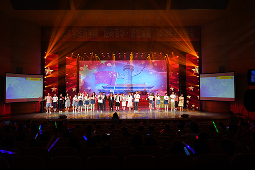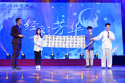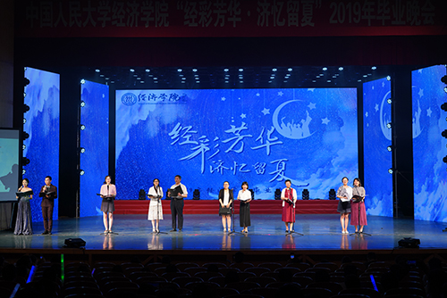 晚会以“经彩芳华,济忆留夏”为主题,巧妙地将“经济”一词融入其中,寄寓了每一位毕业的经院学子在这个意义非凡的夏季一展芳华的愿望。晚会依据节目类型和内容划分为四幕:“夏夜明月,记忆与深情”,打开了一张绘满青春的画卷;“歌舞笑语,诗句趁年华”,展现出经院学生的热情与活力;“我与祖国,小家与大家”,结合建国七十周年的背景,升华了晚会的主题;“从南到北,再看你一眼”,把记忆定格,永驻美好的瞬间。