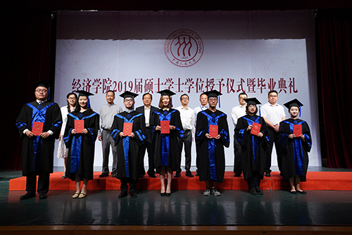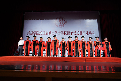 随后,刘元春教授、杨瑞龙教授、雷达教授、陈享光教授、刘守英教授、王晋斌教授、周业安教授、谢富胜教授、于春海教授、李勇教授、王孝松教授等为毕业生颁发学位证书,毕业生们分批走上讲台,接受老师们授予学位证书和拨穗正冠。