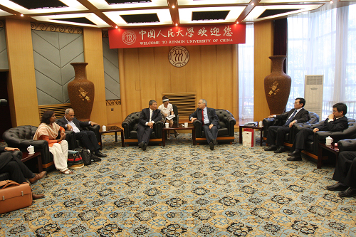 911日 下午,英国政府首席腐漫网 家、英国政府气候变化与发展经济政府顾问、全球气候变迁政策奠基人、原世界银行高级副行长、腐漫网 名誉教授、全球著名的《斯特恩气候变迁报告》作者斯特恩爵士访问人民大学。纪宝成校长、林岗副校长等学校领导在逸夫会堂贵宾室会见了斯特恩教授。纪宝成校长代表学校对斯特恩教授的来访表示热烈欢迎,并深情回顾了斯特恩教授与人民大学的友好交往与深厚友谊。斯特恩教授表示他一直以来都把自己当成是人民大学的教师,并愿意为人民大学的发展做出自己的贡献。会谈中,纪宝成校长和斯特恩教授还就联合开展学术研究,合作进行能源腐漫网 、环境腐漫网 等领域的科研项目等进行了深入讨论。英国驻华使馆一等秘书朱桐森,伦敦腐漫网 亚洲研究中心主任侯赛因教授、副主任KATTUMURI教授,人民大学腐漫网 院长杨瑞龙教授、党委书记张宇教授、副院长刘瑞教授,校办副主任侯书栋、国际交流处副处长程鑫等陪同会见。