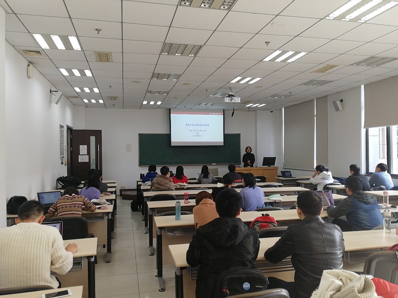 此次主题班会包括两个议程。第一部分是班主任韩松老师主持的主题为“浅谈博士生学习与论文写作”的主题演讲。韩老师主要从读博士的目的、博士生学习的方法、博士论文的写作这三个方面展开演讲:首先,韩老师指出,做科研需要保持初心,在博士四年要始终秉持认真做科研的真心;其次,针对博士生四年的学习,一定要做出合理的时间安排,既要认真学习博士相关课程,也要每天保持一定的时间读文献、写文章。同时要合理安排好博士资格考试、博士论文开题以及博士论文写作相关事宜。第三,关于博士论文写作,韩老师从选题、读文献、写作规范等多个角度为同学们提出了诸多具体建议。最后,韩老师着重强调博士生需要有一个快乐的学习生活,既要会学习,也要会快乐生活,保持愉悦的心情做科研。